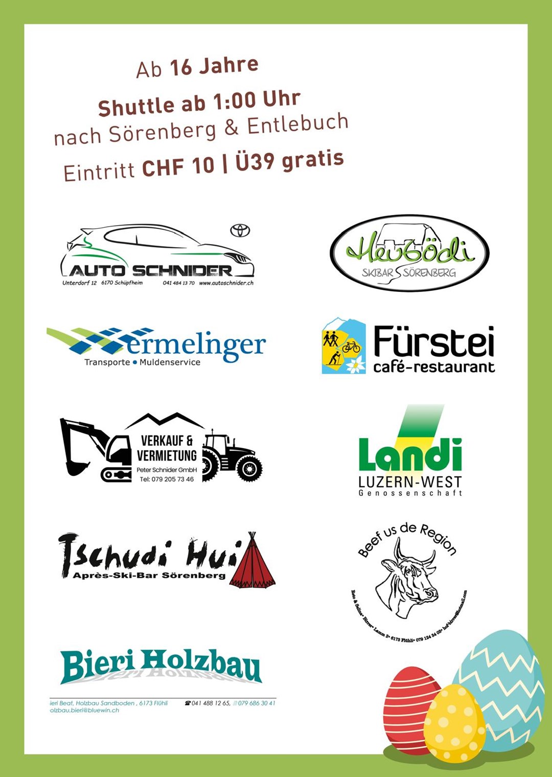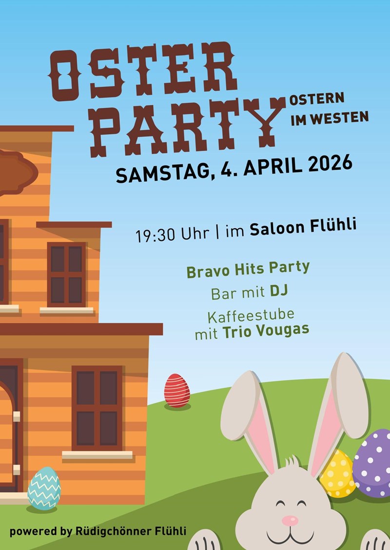 Auch dieses Jahr findet am Karsamstag 04.04.2026 unsere legendäre Osterparty statt.